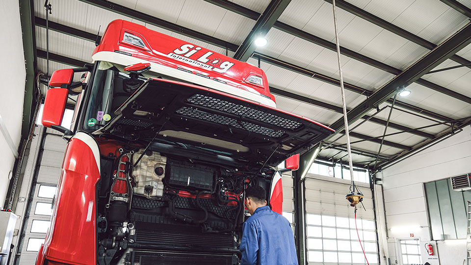 Unsere unternehmenseigene Lkw-Werkstatt ist ein unverzichtbarer Bestandteil unseres umfassenden Serviceangebots. Mit modernster Ausrüstung und einem hochqualifizierten Team von Technikern gewährleisten wir die zuverlässige Wartung und Reparatur unserer gesamten Flotte.